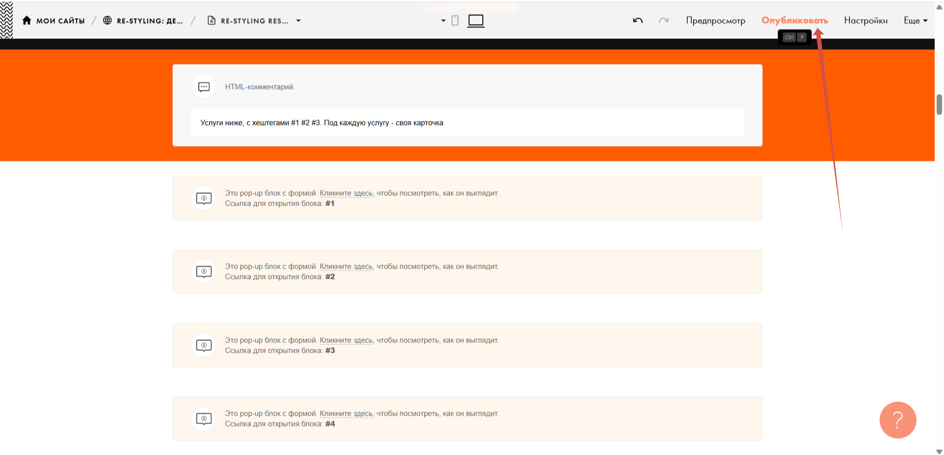 6) Теперь осталось только опубликовать страницу. После публикации проверьте, все ли на сайте работает корректно